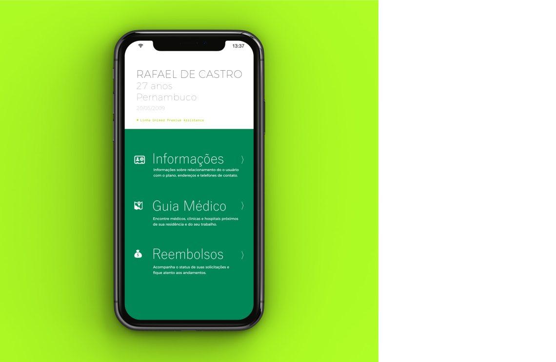 Introducing the app prototype for customer service at the annual Unimeds meeting. The idea was to make the patients' medical records available with a medical guide with appointment scheduling and reimbursement requests.